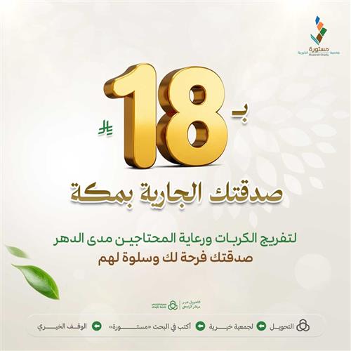 كل يوم تفرج كرب وتقضي حاجة وتسعد إنسان وتحصد دعوات وأجور ما لها عد ، بصدقتك الجارية بمكة ..